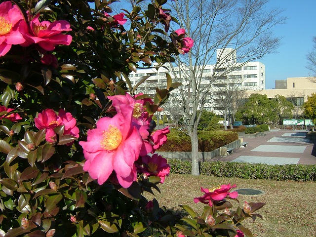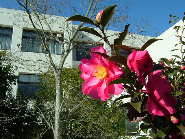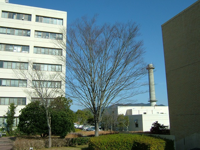 今年は授業が12月22日(金)に終わって、天皇誕生日、日曜、 そしてクリスマスが週明けの月曜日でした。月曜の朝のキャンパスは 人影もほとんどなく、快晴の下、嬉野のキャンパスにレンズを向けました。 写真をクリックすると、拡大されます。